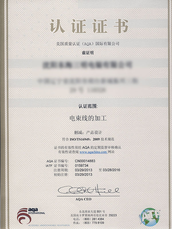 AQA认证证书